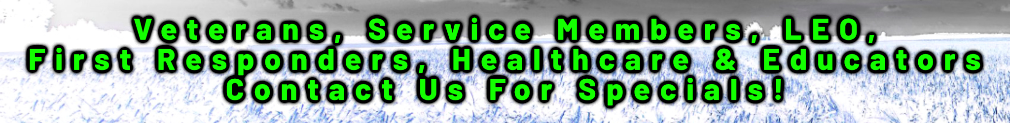Veterans, Service Members, LEO, First Responders, Healthcare & Educators — Please Call or Text for Specials! 1-855-766-4364