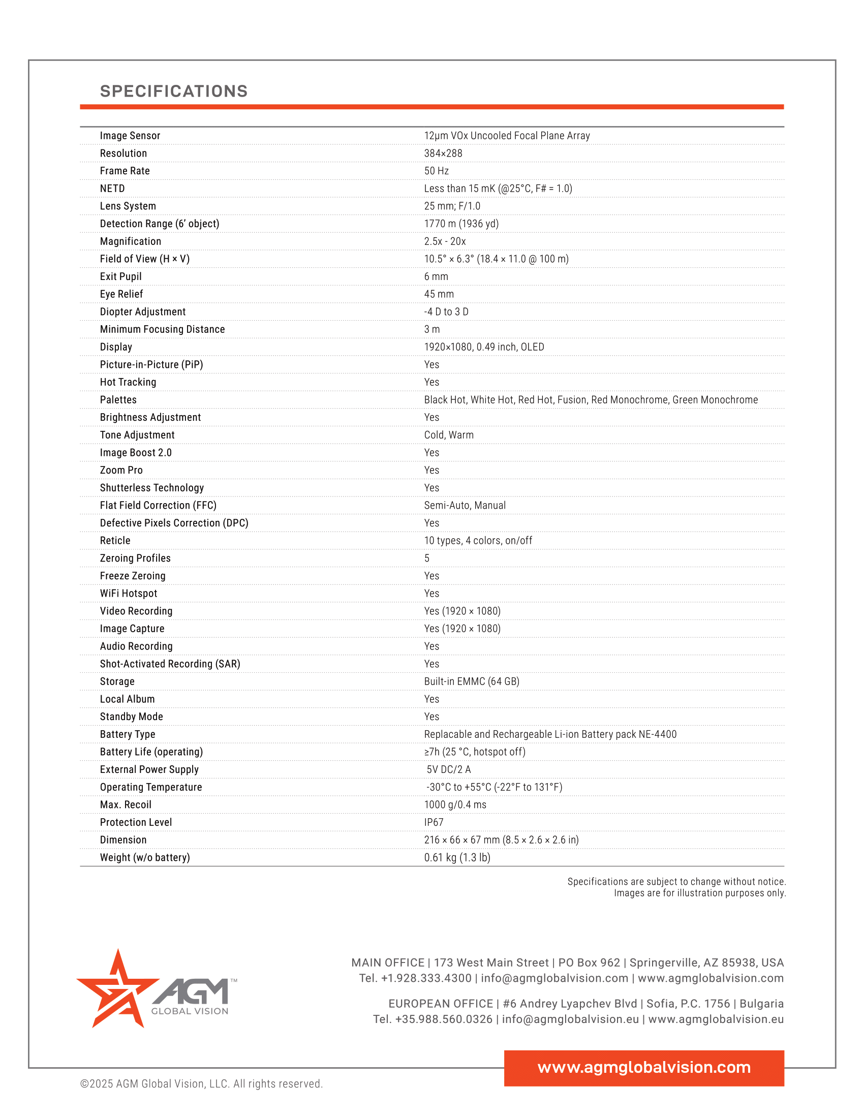 AGM Rattler V3 25-384 Thermal Weapon Sight Specifications: