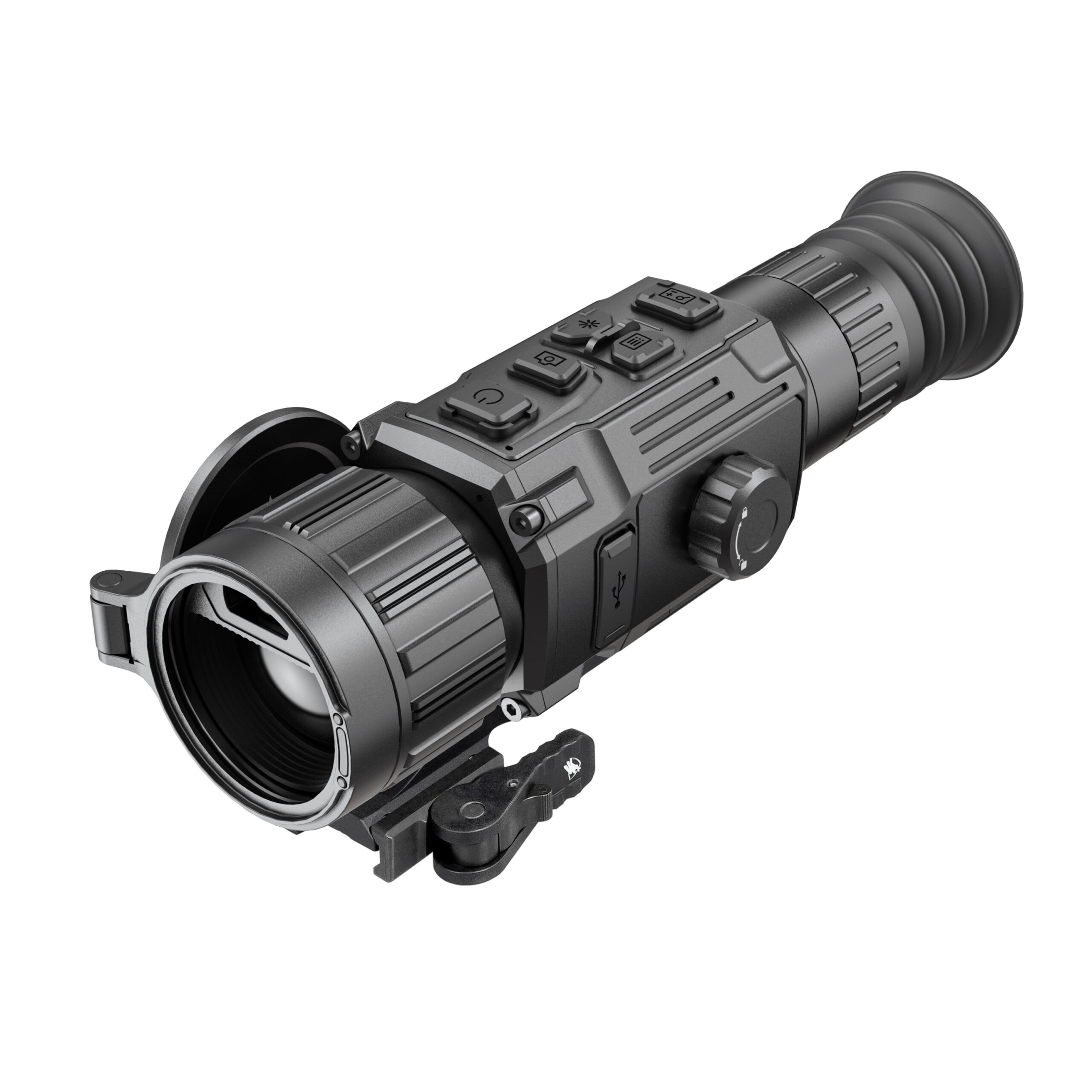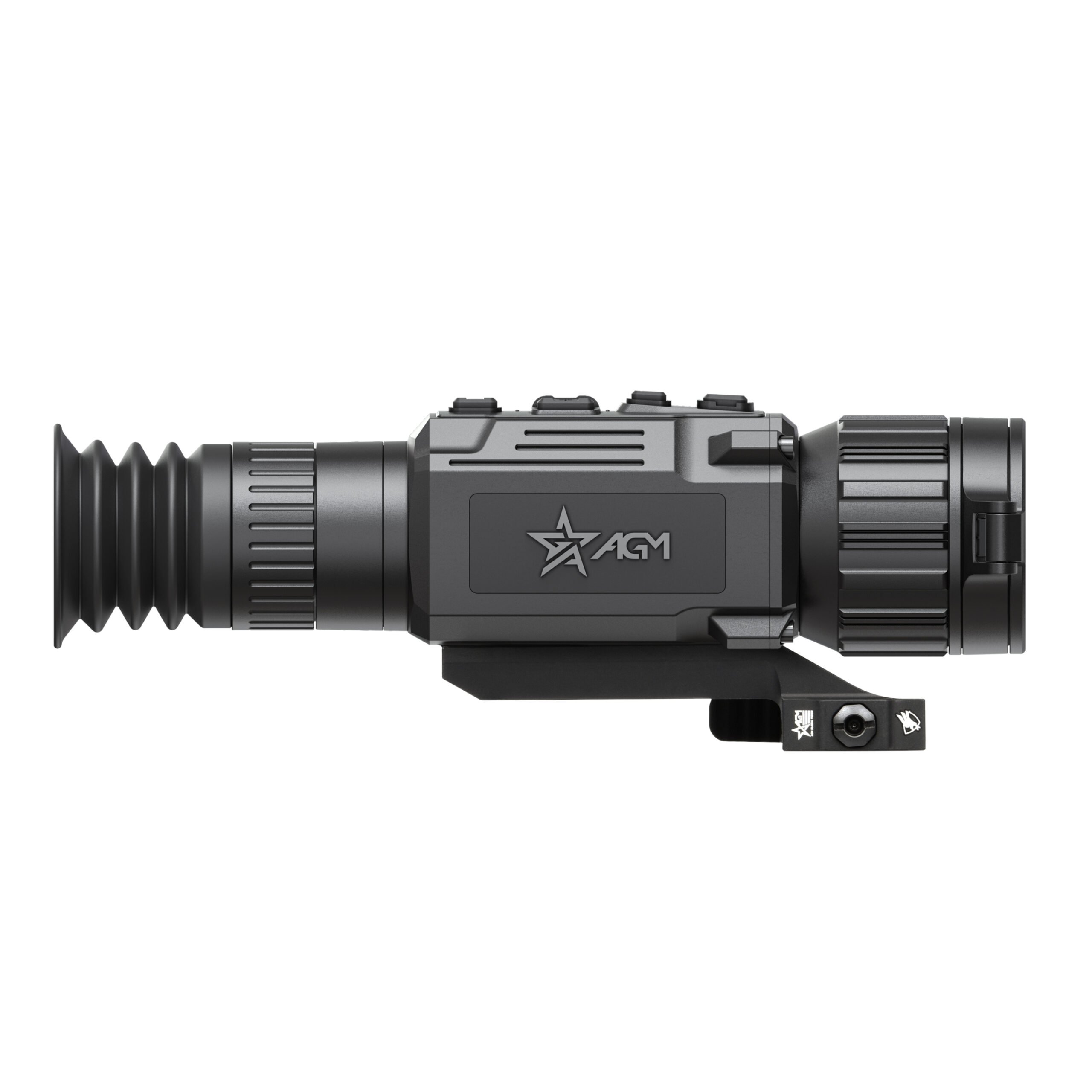 The Rattler V3 LRF 35-640 pairs a 35 mm Germanium lens with an industry-leading sub-15mK thermal sensor and a new 2560×2560 high resolution display, which combines to produce the best 640 resolution thermal image. These technical parameters work together to produce a detection range 1.5 miles. The RattlerV3 LRF also brings the once inconceivable new in-lens LRF technology to the compact Rattler series. A fully integrated 1,000m laser rangefinder is paired with a new on-board ballistic calculator. A newly designed eyepiece gives the RattlerV3 LRF 35-640 a base magnification of 2.5X, making it an optimal option for predator hunters in wide-open terrain, which entices longer range engagements. Its also the first Rattler ever to come with a shutterless NUC and AGM’s powerful new Image Boost 2.0 imaging algorithm. Large sturdy buttons were designed to aid gloved fingers in cold winter weather, while the removable rechargeable NE-4400 battery offers one of the most robust and easy to install battery systems on the market. The firmware package allows users an amazing level of customization: on-board pitch scale, 10 brightness and contrast settings, warm & cold viewing modes, multiple color palettes, picture in picture, ballistic calculation, on-board video recording with sound, WiFi hotspot, multiple zeroing profiles, shot activated video recording, defective pixel repair, hotspot locator and multiple laser range finding modes. Also included is an American-made ADM mounting system.