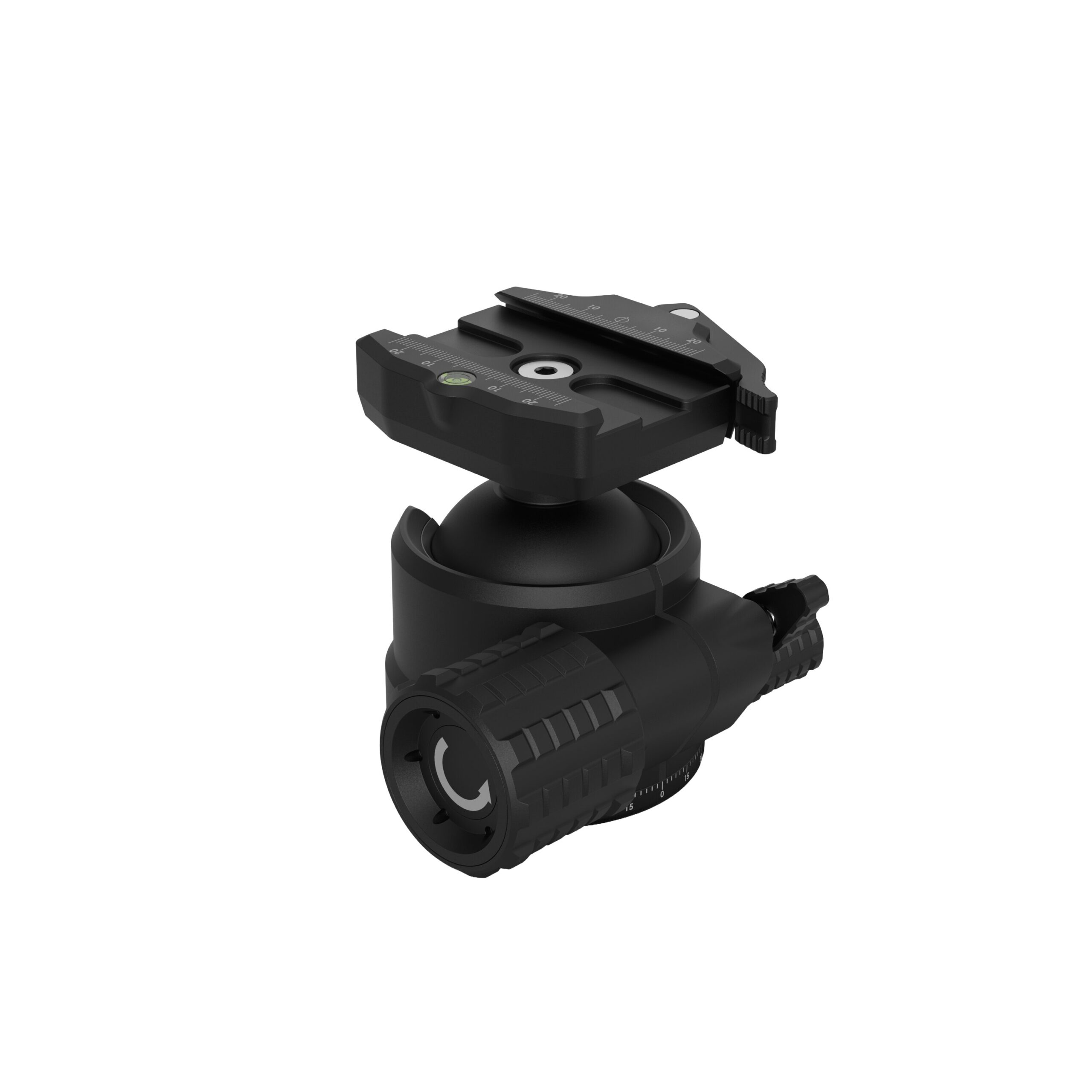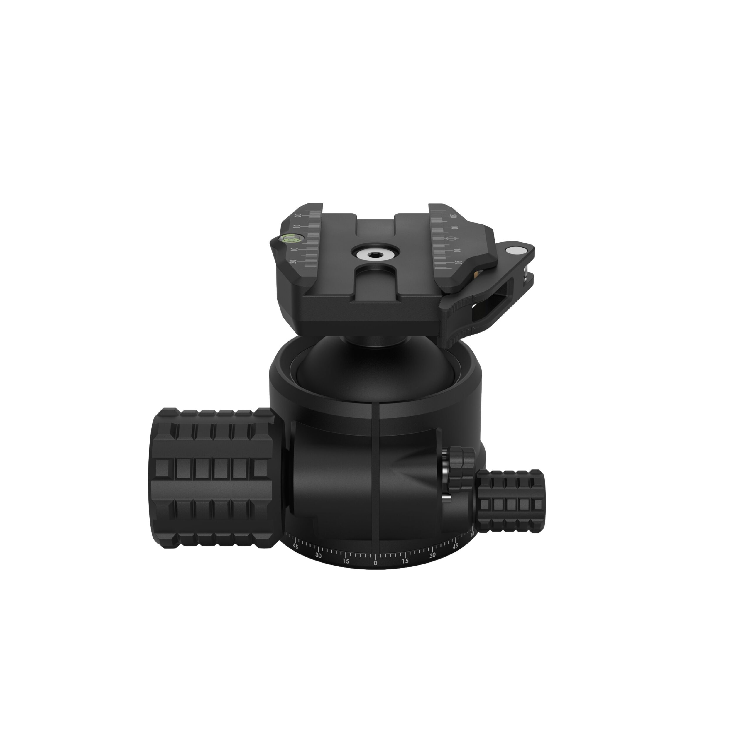 - On both the top plate and panning base for consistent, repeatable alignment during tracking or bracketing.