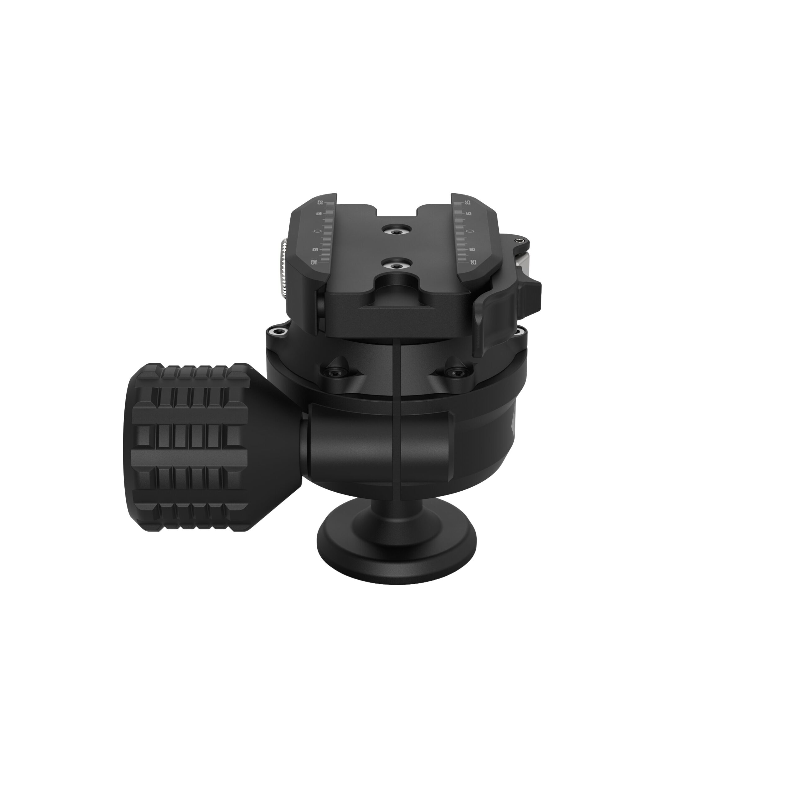 - On both the top plate and panning base for consistent, repeatable alignment during tracking or bracketing.