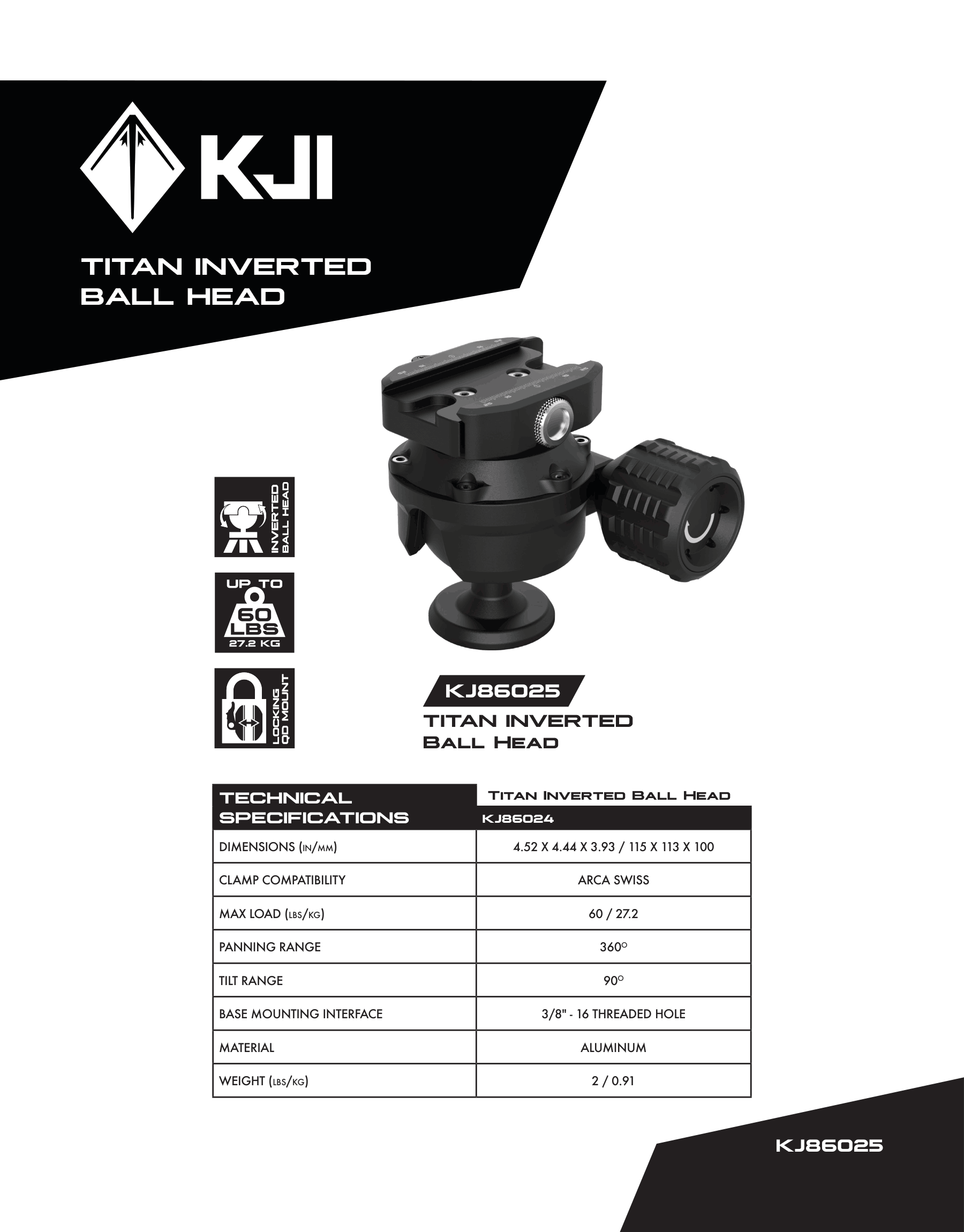 Kopjager KJI Titan Inverted Ball Head Specifications: