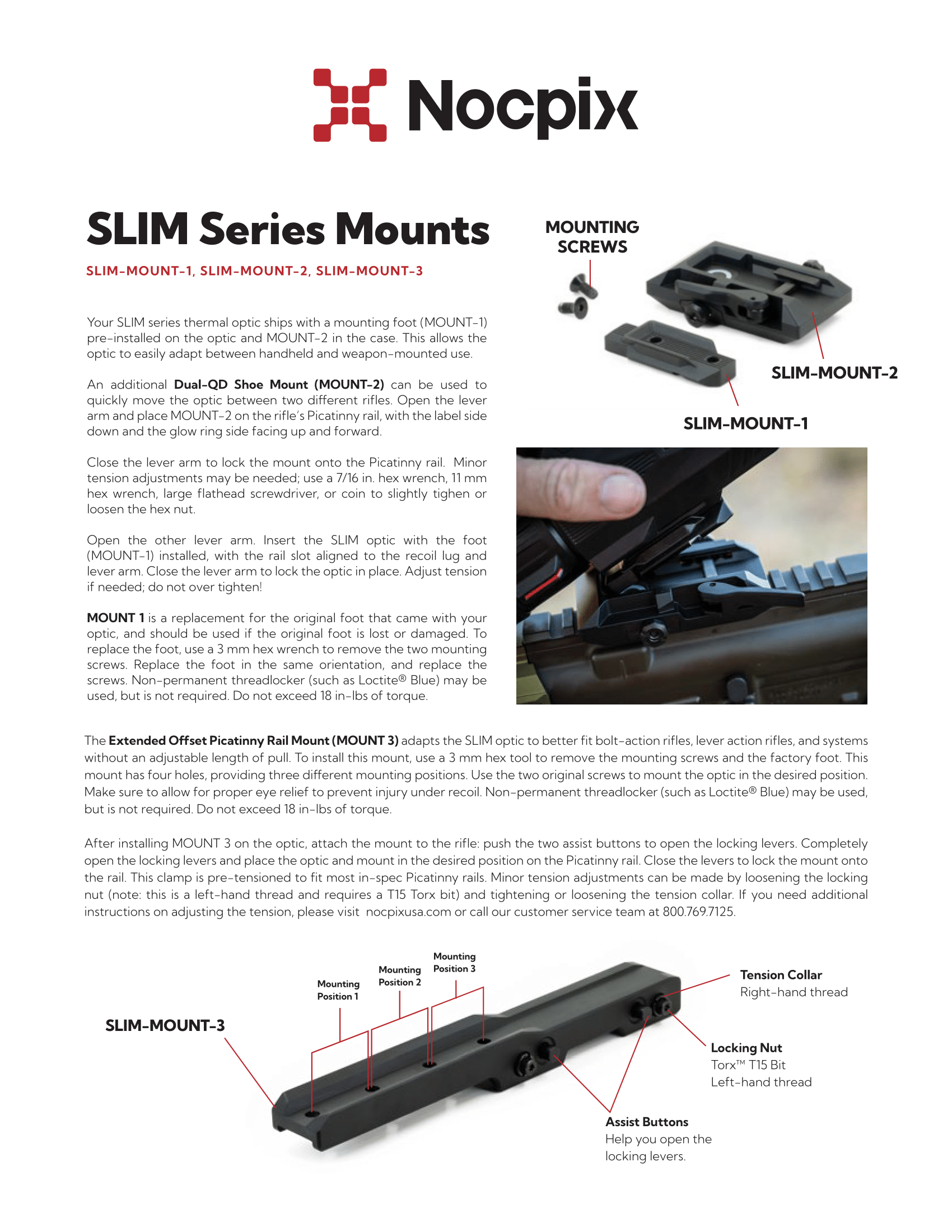 Nocpix SLIM series thermal optics include this mounting system from the factory. A spare SLIM “Foot” (SLIM-MOUNT-1) can be ordered in case the original foot is lost or damaged.
