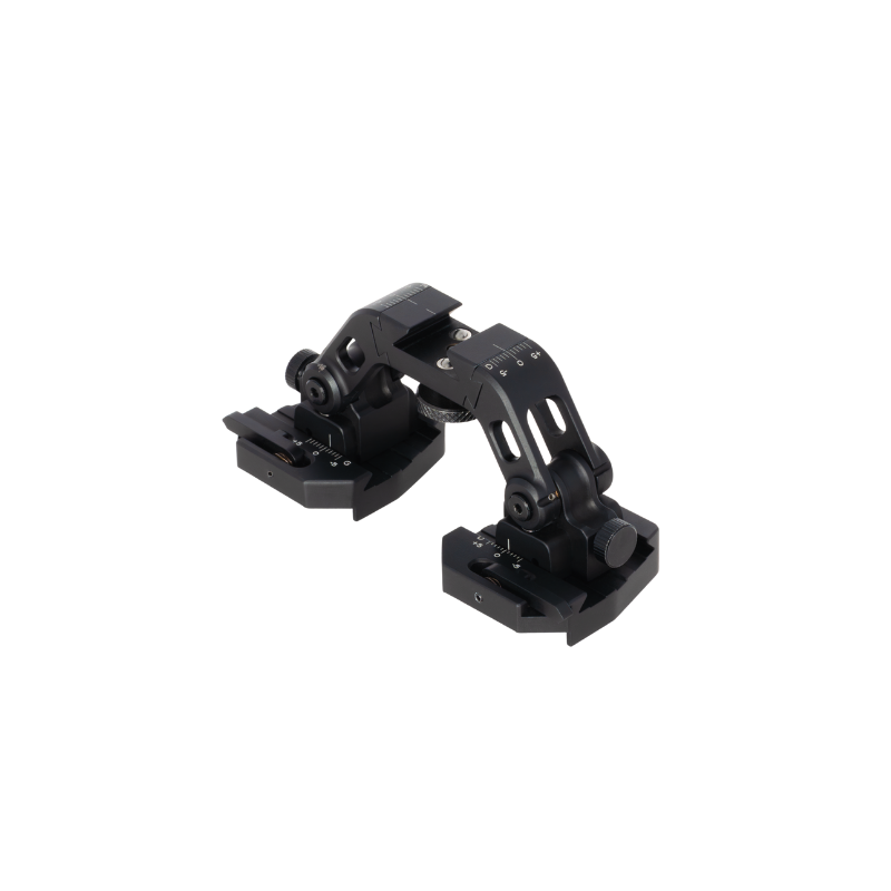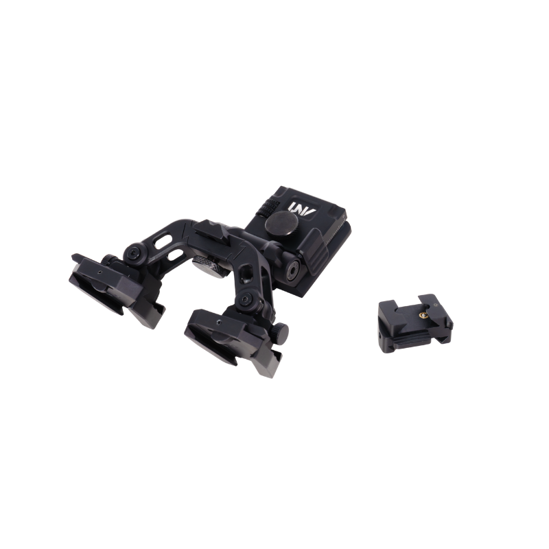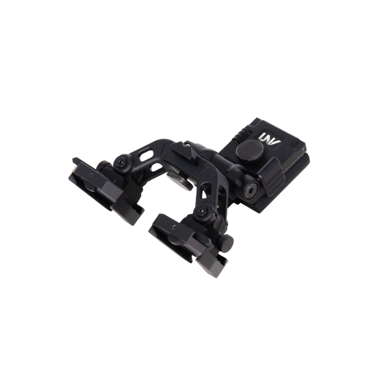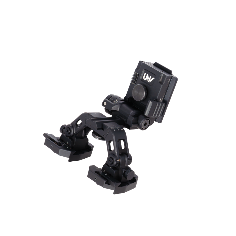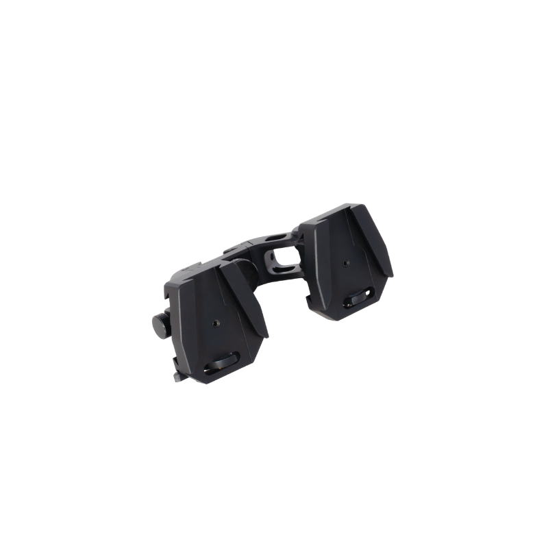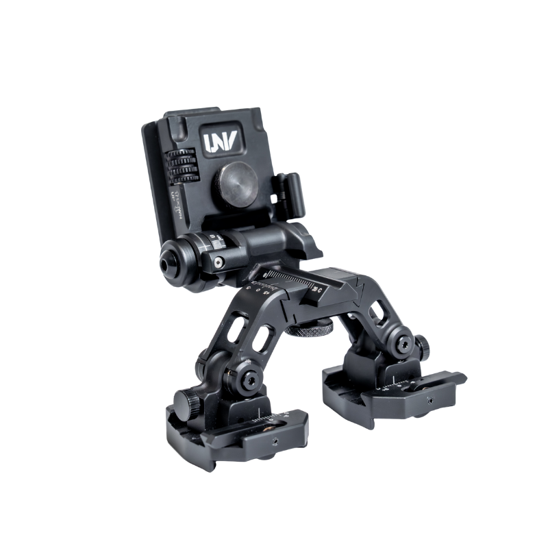 The UNV Ultimate Helmet Mount is a modular dual-optic bridge system designed to give users precise control, repeatable alignment, and maximum flexibility when running night vision or thermal optics on a helmet platform.